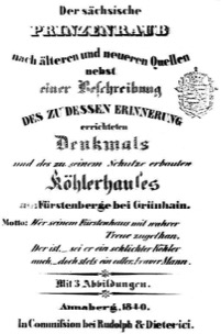 Der sächsische Prinzenraub nach älteren und neueren Quellen nebst einer Beschreibung des zu dessen Erinnerung errichteten Denkmals und des zu seinem Schutz erbauten Köhlerhauses am Fürstenberge bei Grünhain
